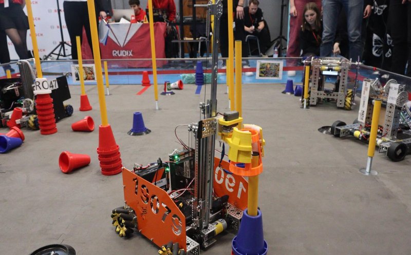 Foto Roboții construiți de liceeni din Cluj se duelează în meciuri demonstrative. Tinerii vor să ajungă în America la turneul internațional