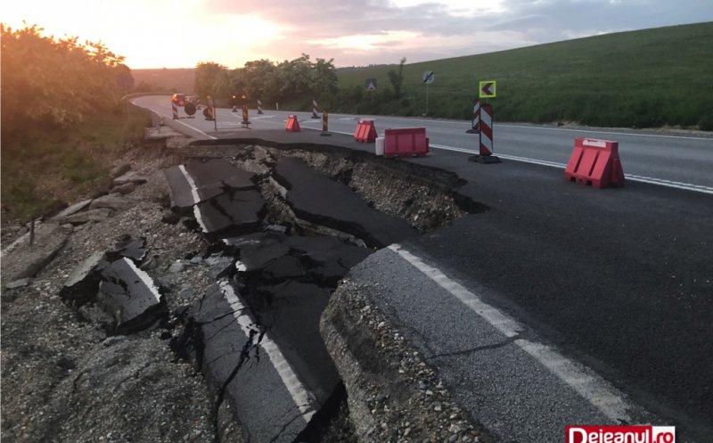 Zilele trecute inevitabilul s-a produs. Drumul a cedat în mai multe locuri, și o porțiune de câțiva metri pătrați s-a surpat și a căzut cu tot cu asfalt și terasament în râpa din apropierea șoselei. Reprezentanții CNAIR nu au putut fi contactați până la această oră pentru a oferi un punct de vedere, conform dejeanul.ro.