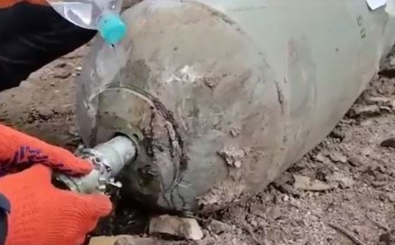 Geniștii ucraineni au dezamorsat o bombă rusească folosind doar o sticlă mică cu apă.