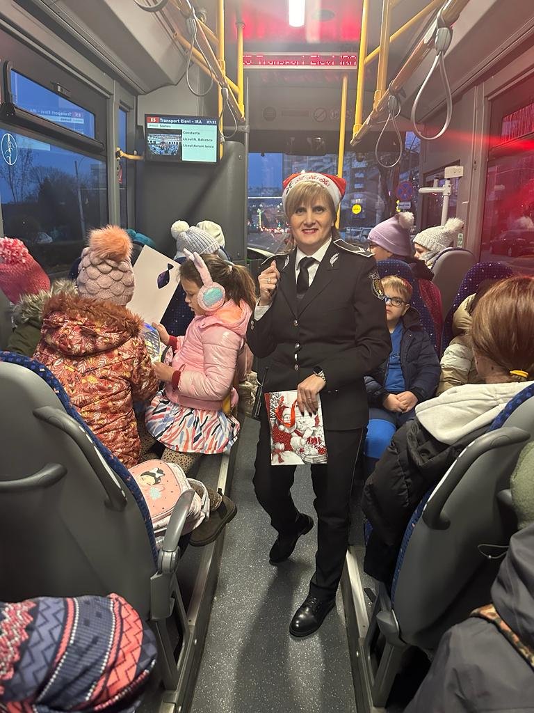 Cei peste 790 de copii care au călătorit spre cursuri cu autobuzele școlare au avut parte de o surpriză plăcută în această dimineață - Moș Nicolae a fost prezent în mijlocul lor și le-a oferit dulciuri cu ajutorul Poliției Locale.
