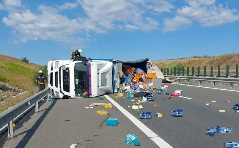 Update Foto TIR răsturnat pe Autostrada Transilvania. Circulația este blocată