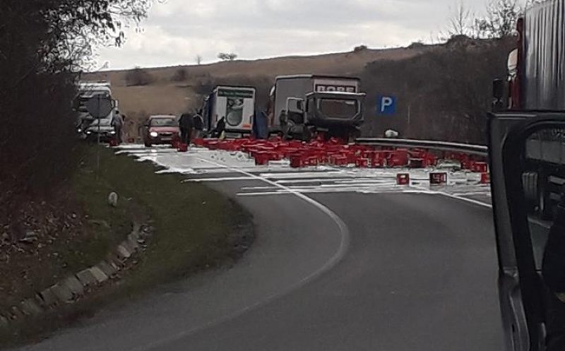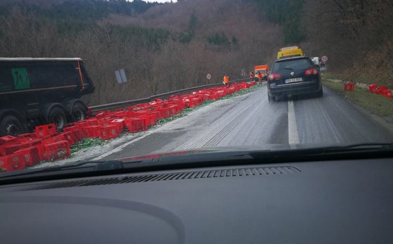 News alert Foto Traficul Cluj - Oradea, blocat! Lăzi de bere împrăştiate pe DN1