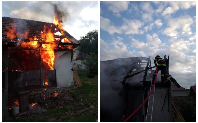 Un incendiu puternic s-a produs, joi seară, în localitatea Leghia, județul Cluj, unde acoperișul unei case a fost făcut scrum.