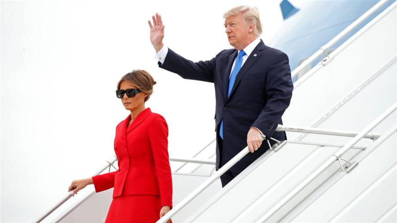 Preşedintele american a venit în Franţa, în urma unei invitaţii din partea omologului său francez, în cadrul comemorării a 100 de ani de la intrarea Statelor Unite în Primul Război Mondial şi cu ocazia sărbătoririi zilei naţionale a Franţei, la 14 iulie.