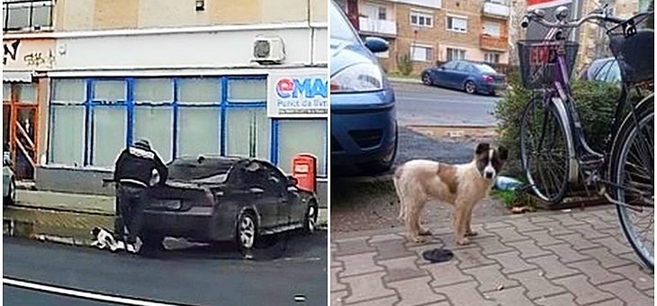 Foto Un clujean și-a aruncat câinele din BMW și l-a abandonat în stradă. L-a scos din sac și a plecat fără remușcări