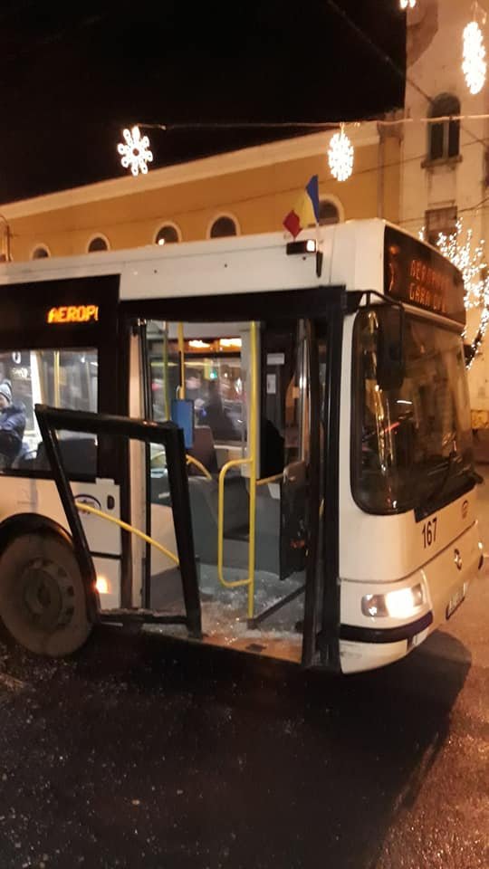 Un troleibuz a fost lovit de un taxi, în centrul Clujului, în zona Sora. În urma impactului, troleibuzul a fost împins de pe banda dedicată mijloacelor de transport în comun.