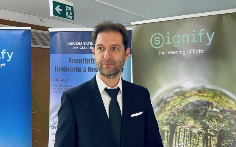Suntem foarte bucuroși că reușim să contribuim și noi cu echipamente către tineri, viitorii ingineri, pe care dorim să îi și angajăm de altfel, și prin acest laborator dorim să fim cât mai aproape de ei, să înțeleagă ce înseamă tehnologia, să poată să se familiarizeze cu ea și să învețe ce poate promova mai departe ca tehnologie de viitor. Facultatea de Inginerie a Instalațiilor de la de la Cluj-Napoca este doar una dintre facultățile pe care dorim să le modernizăm, dorim să ajungem și în alte orașe, dar legătura între noi și această facultate datează de mai mult timp, a fost o continuare a colaborării din dorința de a ajuta cât mai mult studenții. Mă gândesc că am fost și eu student și îmi doream să am un laborator foarte modern echipat, iar din fericire, acum am reușit să-mi pun visul în aplicare” - Răzvan Copoiu, CEO Signify România și Europa de Sud-Est.