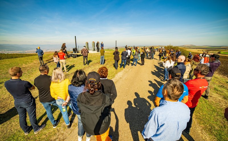 Alin Ușeriu, coordonator proiect: „Ca să iubești România, trebuie să îi dai o șansă, să o iei la pas, să mergi din comunitate în comunitate, care e filozofia acestui proiect. El trece prin 400 de comunități pe diagonală, 107 unități administrativ teritoriale, 1.400 de km, la fiecare km are o bornă de andezit sculpatată”.