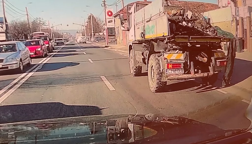 Pe fimarea postată de un colaboratot activ al paginii de Facebook Info Trafic jud. Cluj se poate observa cât de aproape suntem zi de zi de tragedii care pot avea loc în trafic din cauza nepăsării sau a inconştienţei unor şoferi care conduc uriaşe maşini cu încărcătură neasigurată.