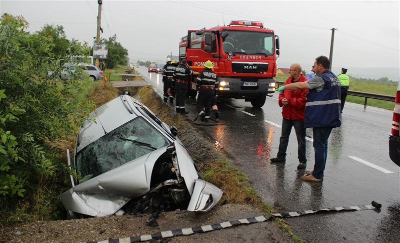 Accidentul s-a soldat cu rănirea gravă a pasagerei autovehiculului, o femeie de 67 ani din județul Bihor.