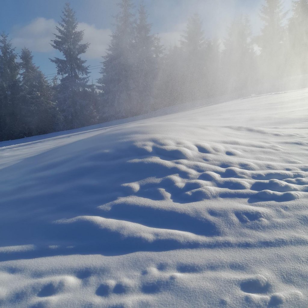 ”Ne-am trezit cu un strat nou de zăpadă proaspătă, perfect așternută peste pârtie! Răsăritul de la Mărișel a colorat cerul în nuanțe spectaculoase, iar peisajul de iarnă este pur și simplu de poveste.