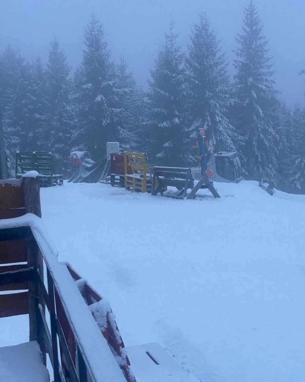 Foto Zăpadă proaspătă la Mărișel: ”Totul este pregătit. Ne vedem pe pârtie!”