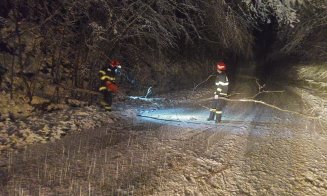 Acțiunea a durat mai bine de două ore și a presupus degajarea materialului lemnos ajuns peste partea carosabilă, au transmis pompierii de la ISU Cluj duminică, în jurul orei 23:00.