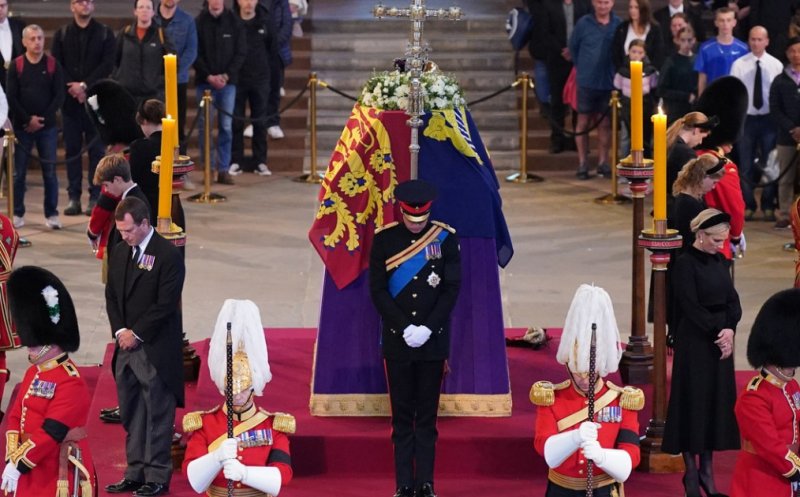 Nepoţii reginei au vegheat timp de 15 minute lângă sicriul Elisabetei a II-a depus la Westminster Hall, potrivit Sky News.