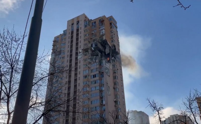Sâmbătă dimineața, o rachetă rusească a lovit o clădire rezidenţială din centrul Kievului.
