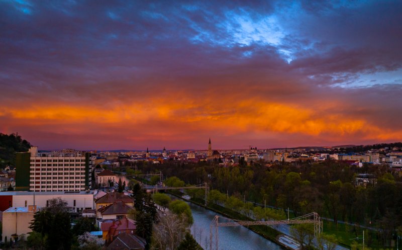 Doi fotografi (Sergiu Răzvan și Gebe Alpar) au surprins un apus minunat în Cluj, chiar în Vinerea Mare. Astfel, clujenii au putut admira vineri seara un apus parcă desprins din filme.