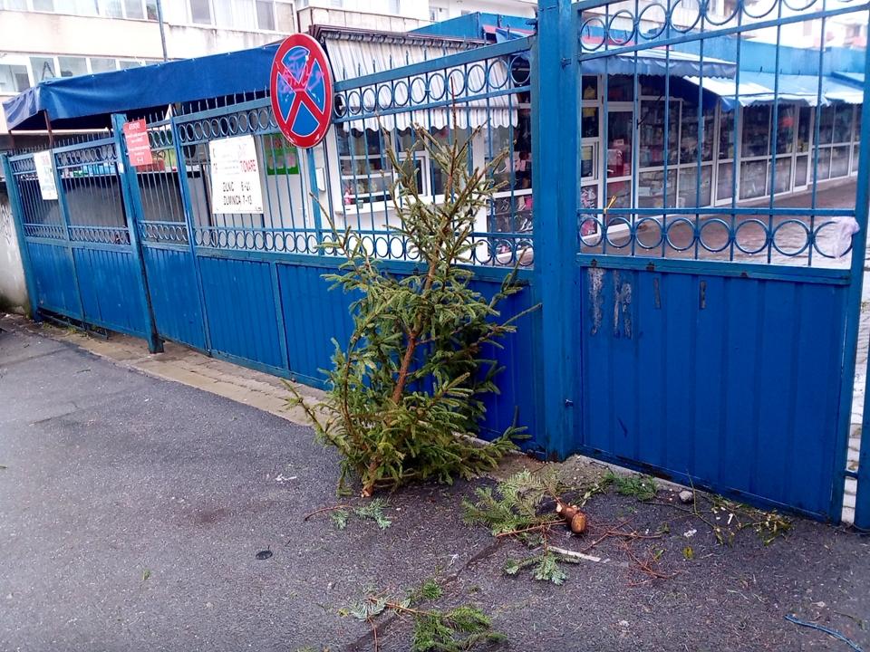 Brazi de Crăciun abandonați de vânzători în zona Pieței Ion Mester