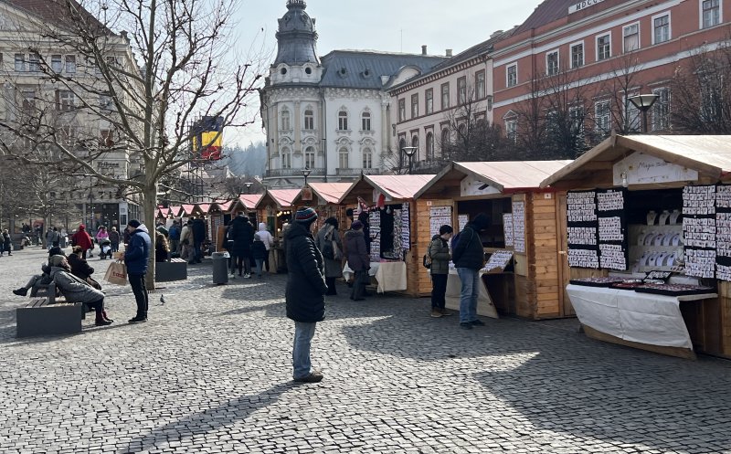 Zeci de căsuțe cu mărțișoare îi așteaptă pe clujeni în Piața Unirii.