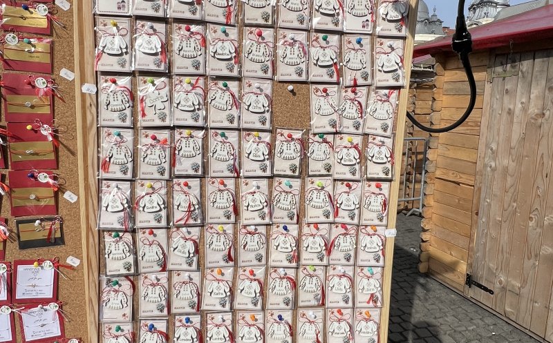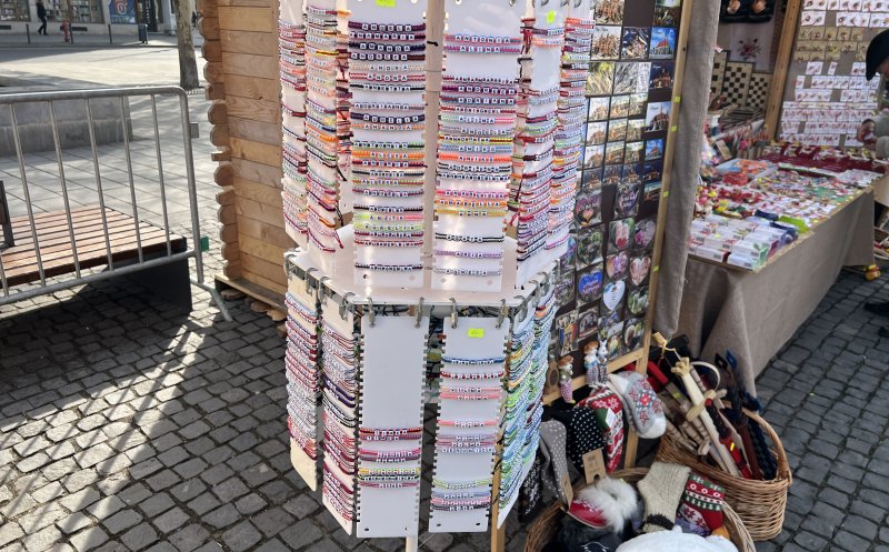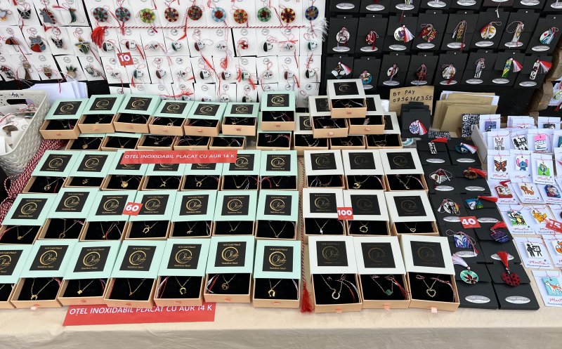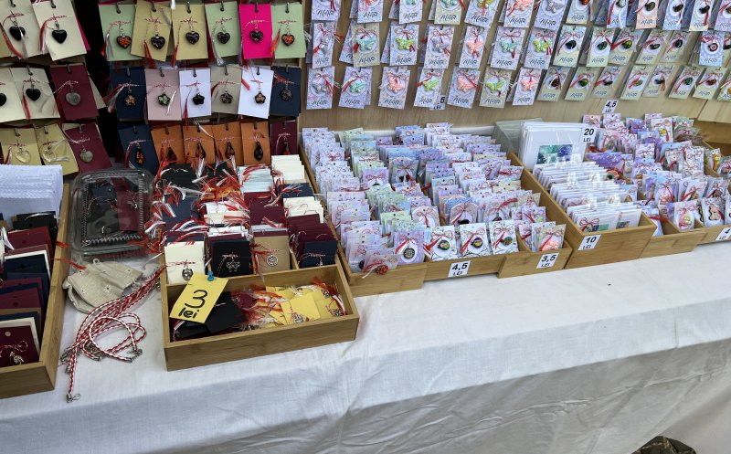 Mărțișoarele nu sunt singurele produse comercializate în Piața Unirii. Se apropie și ziua de 8 Martie, Ziua Femeii, astfel că domnii pot alege cadou o ie tradițională la prețul de 200 de lei. Pentru o brățară personalizată vor plăti doar 20 de lei.