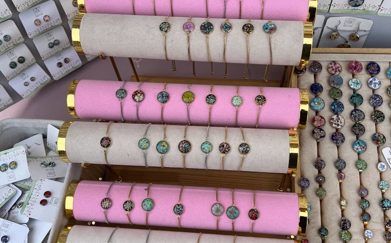 Pentru că am pomenit de 8 Martie, la târg se vând și brățări cu flori din inox la 65 de lei bucata sau placate cu aur de 14 k la 60 de lei. Nu lipsesc nici plușurile animăluțe, la 50 de lei. Un alt cadou poate fi un buchet de de flori din săpun la 10 și 30 de lei.