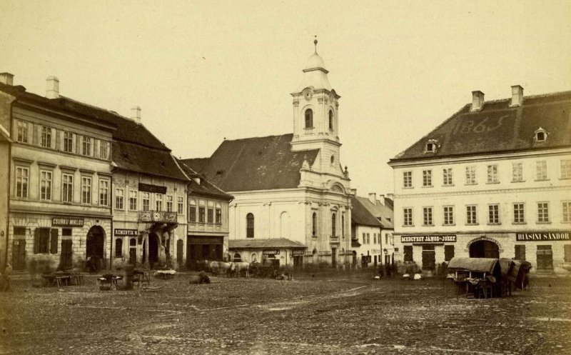 Clădirea a fost construită între anii 1820-1830 în stil neoclasic. Iniţial s-a numit casa “Fiskus” datorită instituţiilor financiare care au avut sediul aici precum şi datorită cârciumei cu acelaşi nume. Conform tradiţiei aici s-au făcut şi recrutările în armata austriacă. Prima bancă din Cluj - Casa de Ajutor Social (“Kisegítő Pénztár”) – şi-a avut aici sediul din 1858.