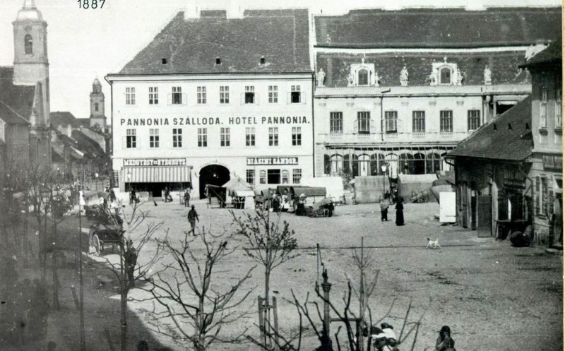 Primul hotel din clădire a fost deschis de un anume Plihál Ferenc în 1872 sub numele de “Pannónia”; după moartea acestuia a fost preluat de celebrul ospătar Nagy Gábor, sub conducerea căruia “Központi szálló” a devenit unul dintre destinaţiile de top (pe lângă New York, azi Continental): s-a cazat aici, printre alţii, şi Johannes Brahms.Turnul a fost adăugat în urma reconstrucţiei din 1890.