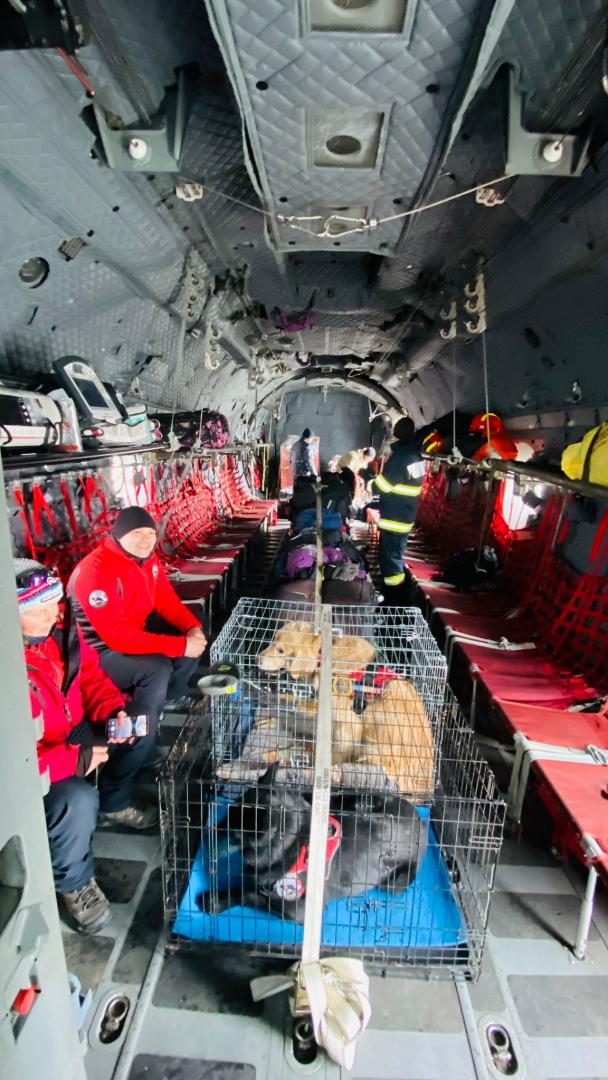 Rareș Urs și Oana Ciora, în avion alături de câinii de salvare, la plecarea spre Turcia / Foto: Arhiva personală Rareș Urs