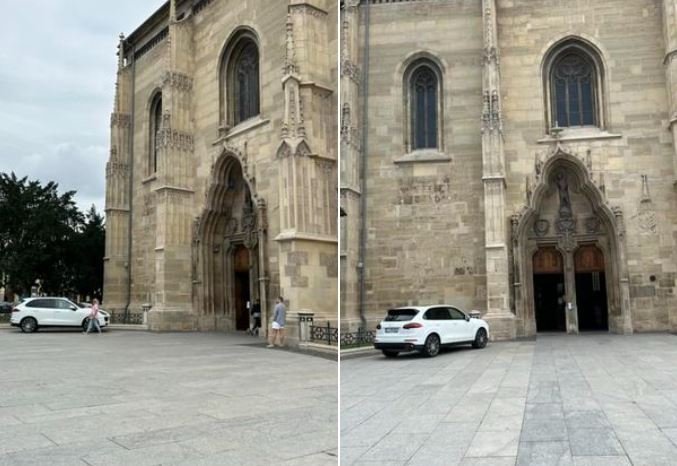 Imaginile cu un bolid parcat pe pietonala din Piața Unirii din Cluj-Napoca, chiar la intrarea în catedrala Sf. Mihail, au stârnit o serie de reacții din partea clujenilor.