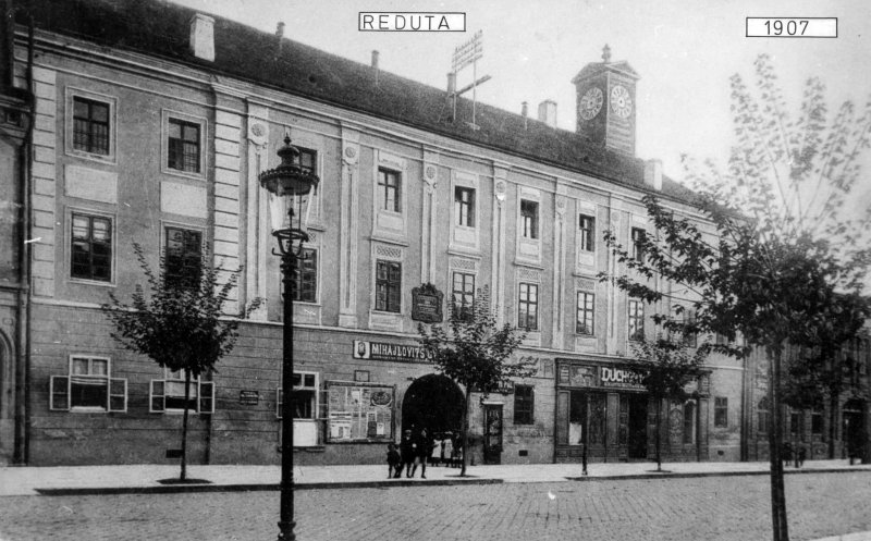 Reduta (de la cuvantul francez La Redoute, sala de dans) avea cea mai mare sala cu destinatie nereligioasa din oras, putand gazdui peste 1000 oameni. Aici au concertat Liszt, Brahms, Enescu; aici a avut loc procesul memorandistilor; aici a fost declarata Uniunea dintre Ardeal si Ungaria ("Unió" de unde si numele vechi al strazii). A gazduit sedinte ale parlamentului (Dietei) transilvanene si aici avut loc prima proiectie de film din Cluj in 1897. Placa comemorativa originala de pe fatada cladirii a fost proiectata de János Fadrusz, sculptorul statuii regelui Matia (indepartata in perioada interbelica).