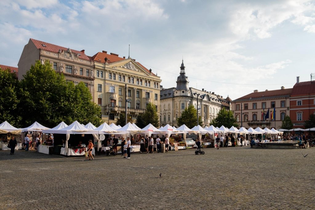 Foto Piața Țărănească din centrul Clujului. Zacuscă, must, plăcinte și poale-n brâu