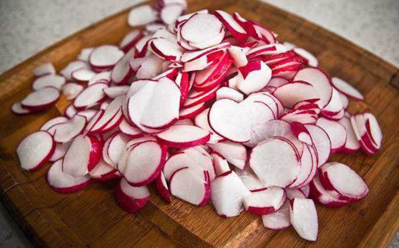 5. Dați ridichile prin răzătoarea mare și puneți-le deasupra cașcavalului.