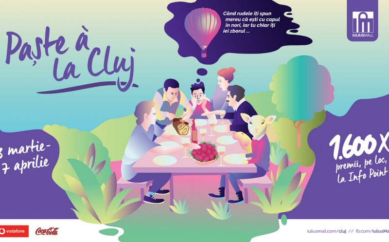 Sărbătorile Pascale se apropie, iar febra pregătirilor va fi în toi. De aceea, Iulius Mall Cluj îți propune un Paște à la Cluj, în meniu fiind incluse experiențe antrenante și amuzante, sesiuni de înfrumusețare, masaje de relaxare, timp petrecut la SPA și mult shopping. Tot ce trebuie să faci este să te bucuri de cumpărăturile în magazinele tale preferate din Iulius Mall Cluj, iar dacă ai trecut pragul de minimum 200 de lei, te înscrii cu bonurile fiscale la Centrul Info. Primii 100 de participanți din fiecare zi vor fi răsplătiți instant cu premii alocate direct prin aplicația electronică, care te invită să petreci un Paște à la Cluj. În total, vor fi acordate peste 1.600 de premii.