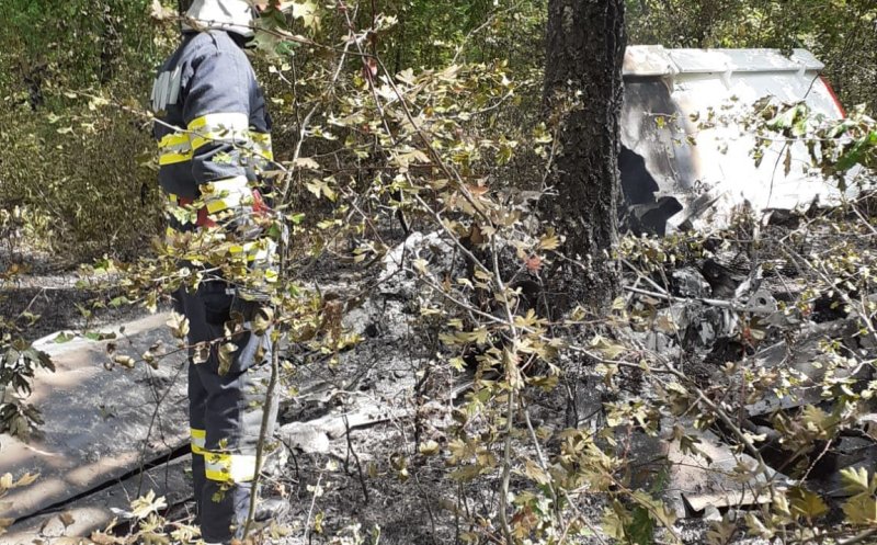 Foto Avion de mici dimensiuni, prăbuşit. Două persoane carbonizate, găsite la locul accidentului