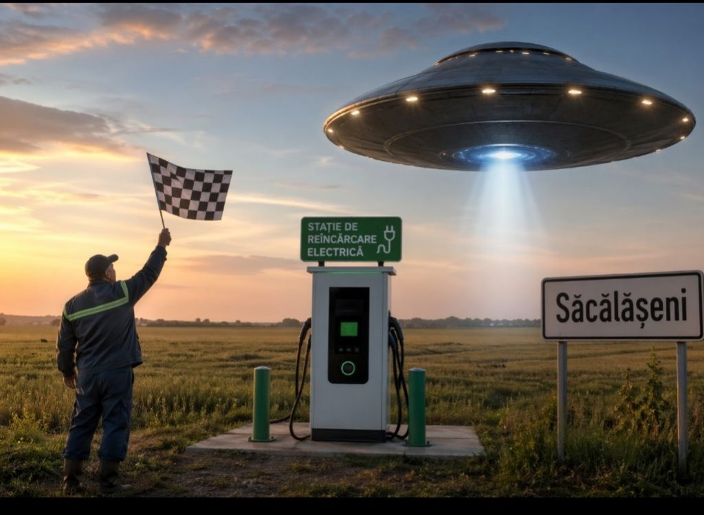 Între timp, în mediul online maramureșenii glumesc despre această investiție. Ea este comparată cu o pistă de aterizare pentru navele extraterestre (foto AI). Iată o parte din ele postate pe pagina de Facebook Duhul Răutăților: