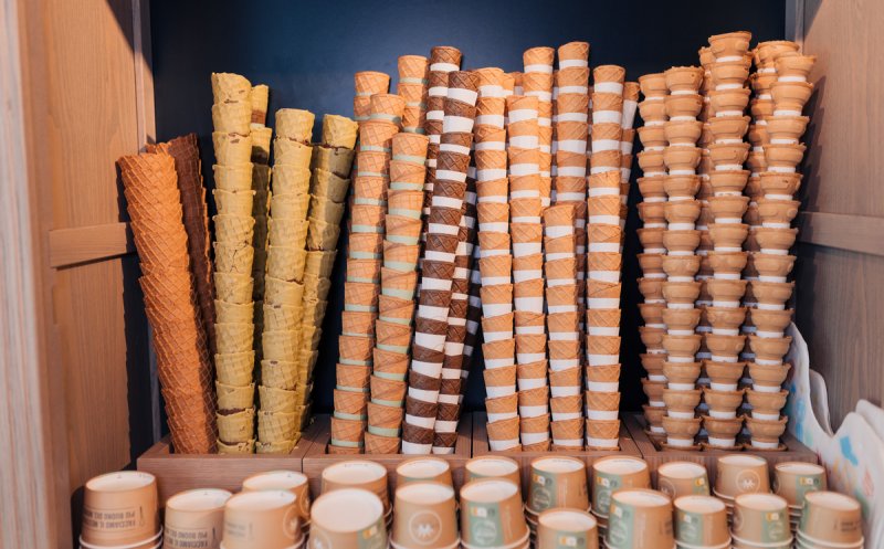 În locația din Iulius Mall, clujenii pot încerca și arome vegane, pe bază de lapte vegetal sau apă: Mintnight, Latte di Mandorla e Fragole, Yove, Fichi e Sesamo Pralinato. De asemenea, sunt disponibile și cornete fără gluten.