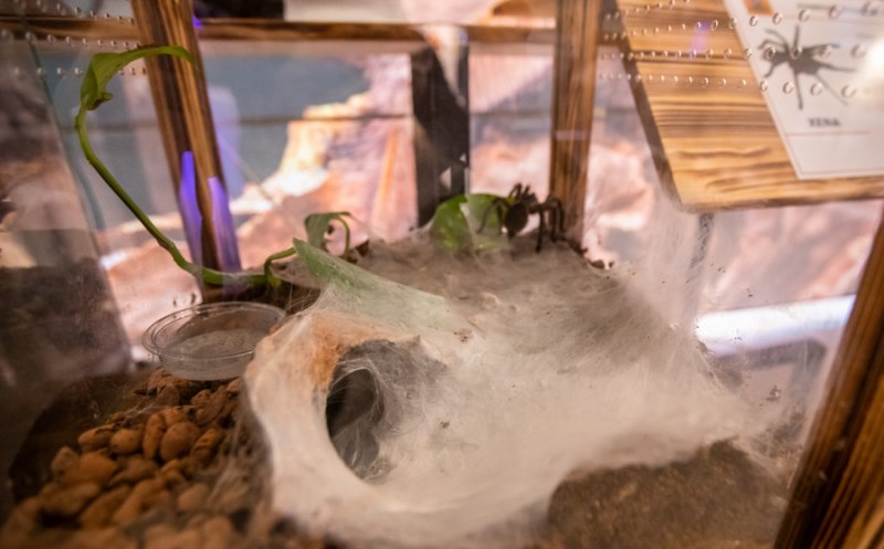 Datorită terariilor amenajate astfel încât să reproducă fidel habitatul natural al fiecărui specimen în parte, vizitatorii vor putea vedea în ce condiții trăiesc acestea, dar și cum își „decorează" chiar ele mediile. Un fapt interesant despre femelele tarantule este că își folosesc pânza pentru a ranforsa pereții vizuinelor în care trăiesc, creând astfel o „broderie" spectaculoasă.