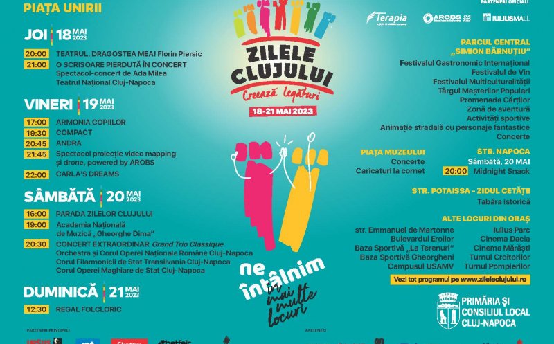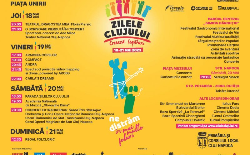 Zilele Clujului au loc în perioada 18-21 mai, eveniment organizat de Primăria și Consiliul Local Cluj-Napoca cu sprijinul partenerilor: