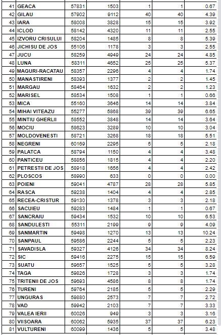Coeficientul infectărilor cu noul coronavirus, cumulate la 14 zile, raportate la 1.000 de locuitori în județ a intrat pe un trend descendent în ultimele zile și a ajuns la 4,93 azi, de la 6,16 - cât era lunea trecută. Vestea bună e că rata îmbolnăvirilor a scăzut semnificativ față de valoarea de săptămâna trecută și în Cluj-Napoca - de la 7,07, la 5,26 astăzi. De asemenea, incidența cazurilor a înregistrat o scădere și în localitățile clujene. În prezent, coeficiente peste 7 la mie au municipiul Câmpia Turzii - 8,63 și comunele Călărași - 7,19, Ceanu Mare - 8,84, Feleacu - 7,03, Sânmărtin - 10,24 și Săvădisla, cu 8,24 cazuri la mia de locuitori.
