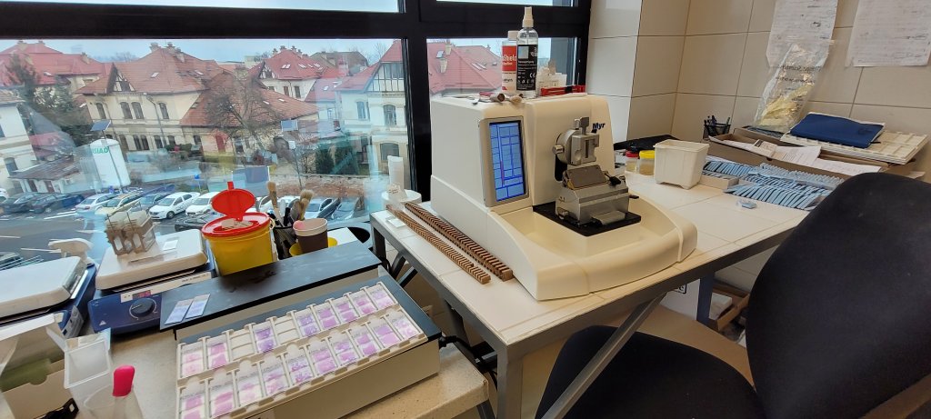 Laboratorul de Anatomie Patologică a fost dotat cu echipamente performante, inclusiv roboți de procesare a probelor, microtoame, sisteme automate de colorare și scanere de lame histologice. Scannerul de lame reprezintă unul dintre cele mai importante elemente ale investiției, permițând digitizarea completă a preparatelor histologice.