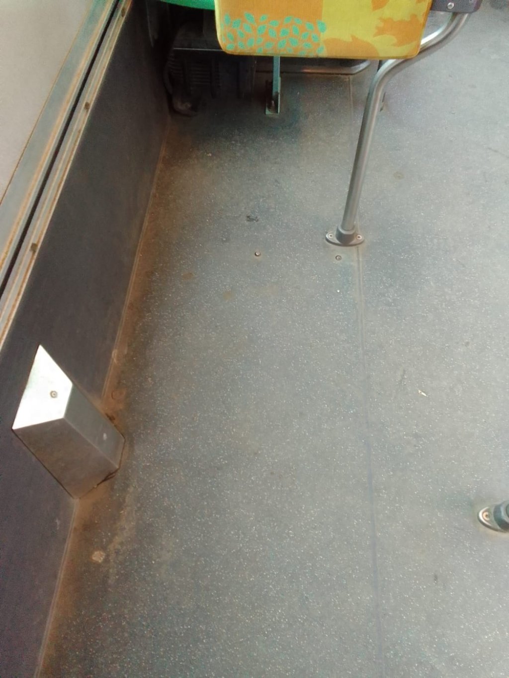 În imagini se observă gradul de jeg din autobuzul care pare să nu fi fost splălat decât foarte superficial de la darea în funcţiune şi până acum.