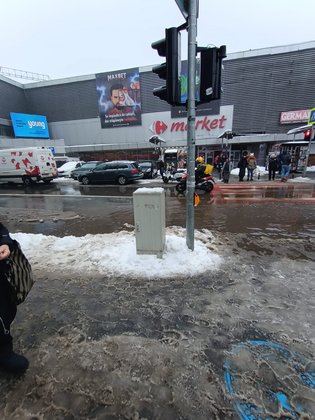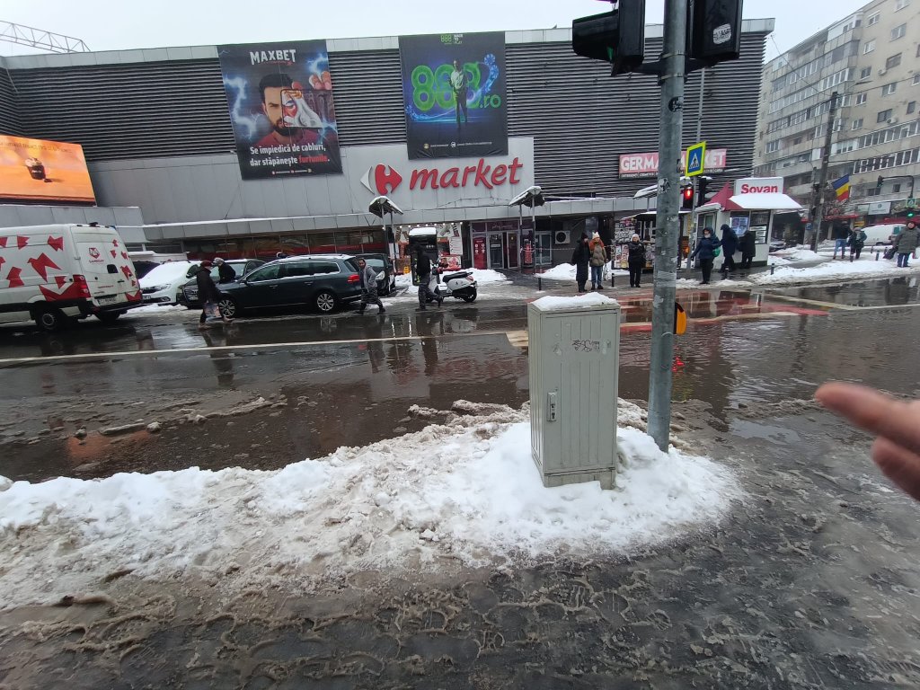 Un alt caz e la trecerea de pietoni de la Big, unde s-a format un adevărat lac de acumulare pe aproape o bandă întreagă de circulație. Un pensionar voluntar, din moment ce angajații Supercom lipseau cu desăvârșire din zonă, făcea manevre în data de 15 ianuarie cu o lopată pentru a da de gura de canal din lacul mizerabil în speranța că va degaja de acolo ceva gunoaie.