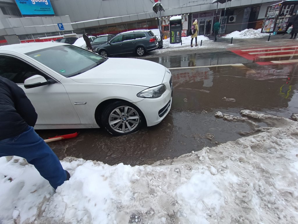 Zăpada adunată pe marginea drumurilor în urma curățării trotuarelor și a drumurilor din Cluj-Napoca nu a fost ridicată, iar acum se topește, făcând din traversarea unor străzi adevărate capcane cu mocirlă. Nici cei care circulă pe trotuar nu scapă neagezmuiți de șoferii grăbiți.