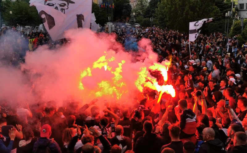 Video Foto ATMOSFERA INCENDIARA! Fotbaliștii Universității au sărbătorit promovarea, în centrul Clujului, alături de fani. A participat și Mitropolitul