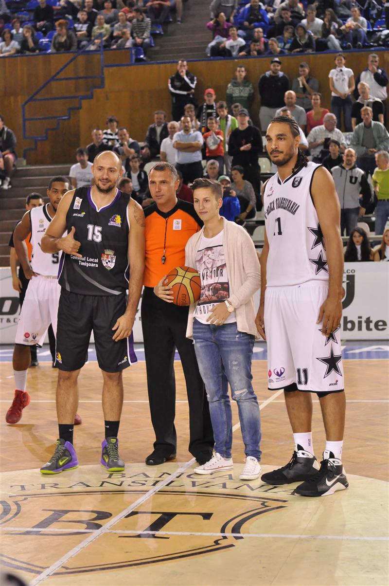 Lovitura de începere a meciului a fost dată de campioana mondială la juniori la handbal feminin under 18, Cristina Laslo.