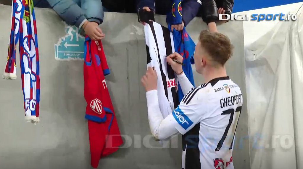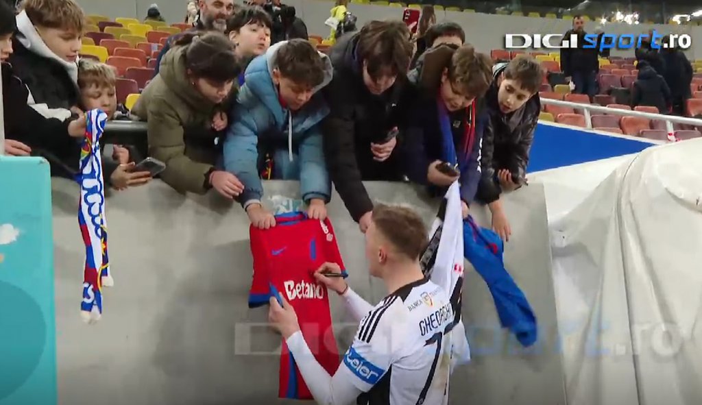 După fluierul final, Gheorghiță a mers mai întâi să salute niște apropiați, iar după ce a revenit la nivelul gazonului a fost rugat de mai mulți copii să semneze inclusiv tricouri și fulare cu FCSB. Fotbalistul nu i-a refuzat pe cei mici, a semnat tot ce i-a fost înmânat și a făcut și poze cu suporterii roș-albaștrilor.
