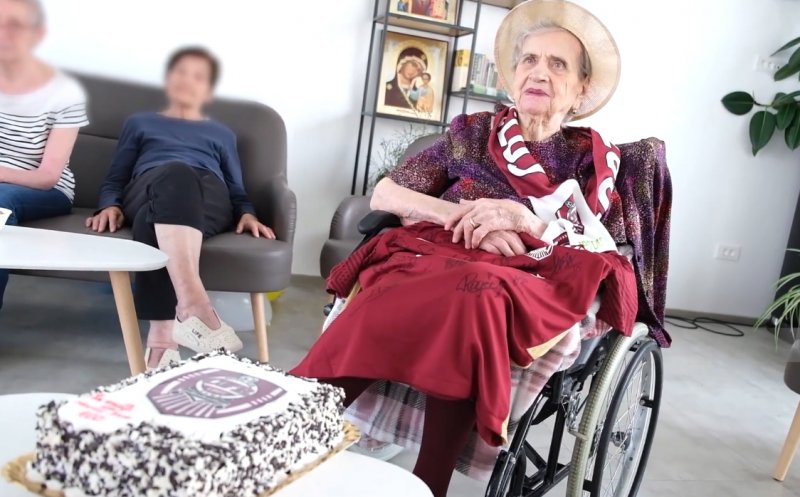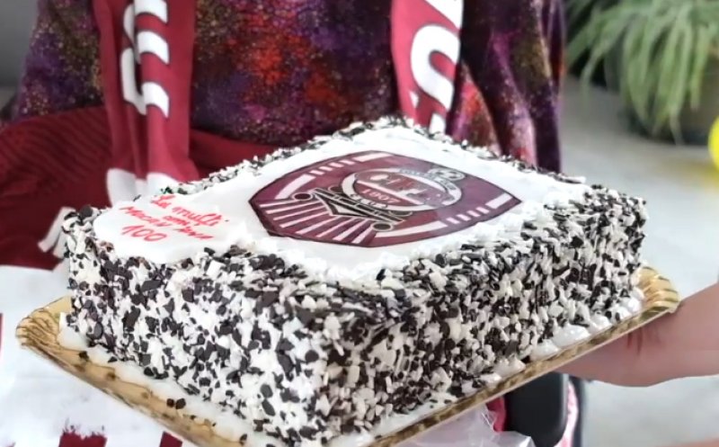 Campioana CFR Cluj a făcut o surpriză unui suporter care tocmai a împlinit vârsta de... 100 de ani: i-a oferit alături de un tort cu sigla clubului, un tricou de campion cu numărul 100 şi numele inscripţionat.