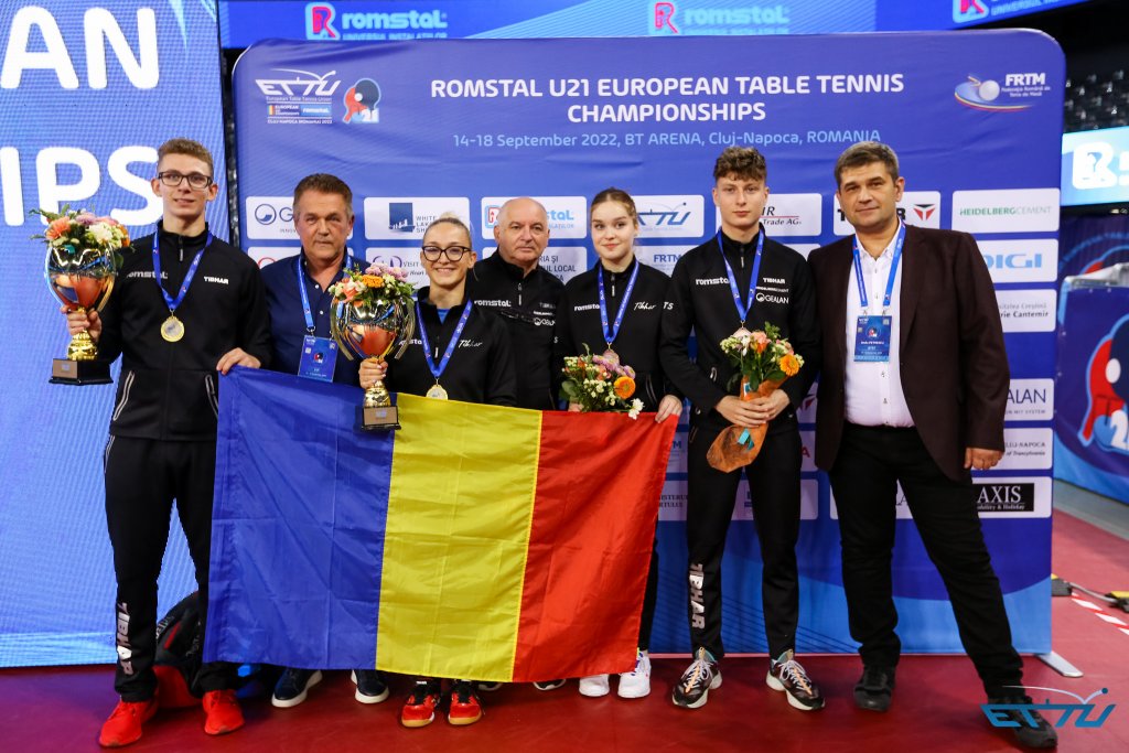 România a cucerit două medalii, aur şi bronz, în proba de dublu mixt, sâmbătă, la Campionatele Europene de tenis de masă Under-21 de la Cluj-Napoca.