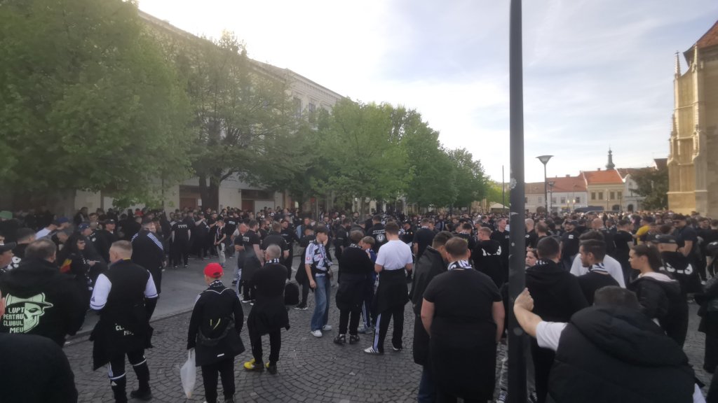Suporterii liderului din Superligă se "încălzesc" în Piața Unirii pentru întâlnirea cu trupa din Gruia.