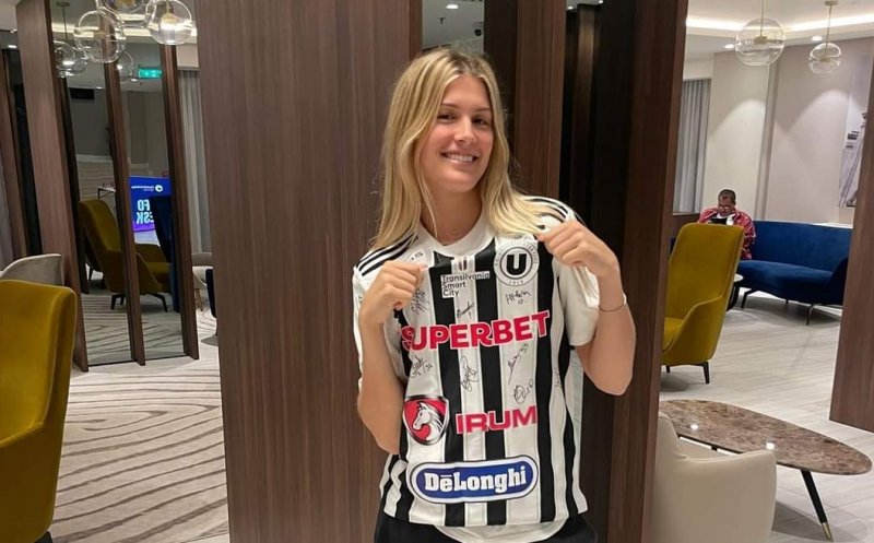 Prezentă la Cluj cu ocazia Transylvania Open, jucătoarea de tenis nu a ratat ocazia de a se fotografia in tricoul echipei clujene.