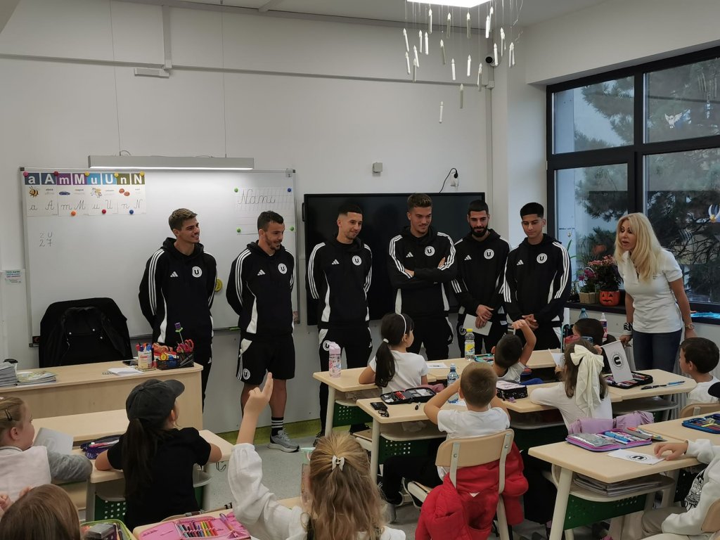 Școala Gimnazială "Iuliu Hațieganu" a fost vineri gazda unui eveniment cu adevărat special. Mai mulți jucători ai Universității Cluj i-au vizitat pe elevi, iar primirea a fost una extraordinară. Micuții au fluturat steaguri, au cântat și i-au aplaudat pe fotbaliștii liderului din Superligă.